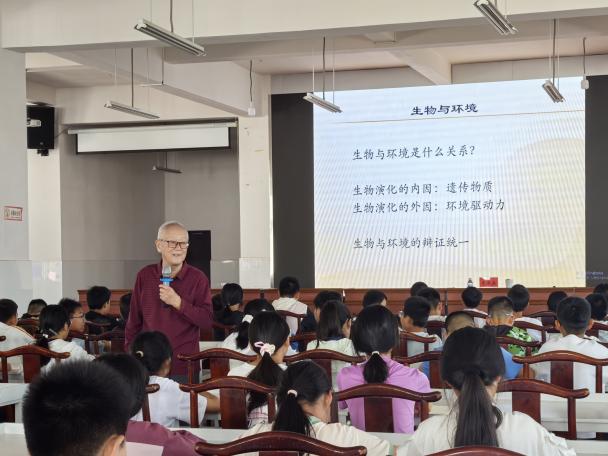 李老师走进大姚县民族中学、永仁县第一中学、元谋县源达小学、武定县第一中学、禄丰市城南小学,为2940名中小学生作《走进南北极 探秘冰雪世界的故事》、《探索神奇的植物王国》、《吐鲁番的火焰山、葡萄沟与古代文明》等五场报告。他以生命演化为主题,讲述生物体内在的遗传物质与生存环境之间辩证统一关系,推动生物界发展。