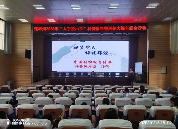 2025年10月13至17日,由云南省科协、省教育厅、中国科学院昆明分院、中国科学院老科协联合举办的2025年“大手拉小手·科技传播行动”科普巡讲活动,其主题是“提升全民科学素质 弘扬科学家精神”。应邀参加活动的有中国科学院老科协科普讲师团团长李承森、团员孙莹、云南民族博物馆研究馆员邱文发、昆明理工大学民航与航空学院教师杨洋。专家们围绕生物与环境、弘扬科学家精神、云南民族传统科技、无人机等领域开展20场讲座,1万余名师生聆听报告。