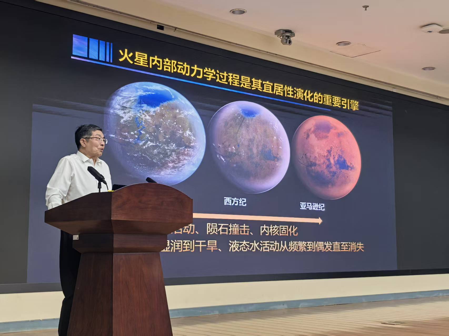 潘老师阐释:火星地貌诉说着曾经的水活动故事。地质:火,山活动、陨石撞击、内核固化。气候:从湿润到干旱,液态水活动从频繁到偶发直至消失。火星内部动力学过程是其宜居性演化的重要引擎。他的《第二次小结》告诉听众:地貌学、地质学和地球化学证据表明,早期火星环境曾存在温暖湿润期,曾广泛发育河流、湖泊甚至海洋,巨量液态水的流动塑造了火星特征。曾拥有丰富液态水是探索火星潜在生命迹象的重要基础。