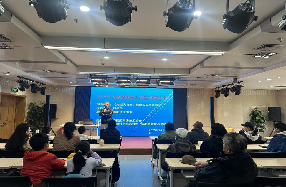 2025年10月25日上午,海淀区图书馆在图书馆四层多功能厅成功举办“海淀创新大课堂&海图讲坛”活动,活动邀请中国科学院老科协科普讲师团成员,中国地质科学院白勇军高级工程师作“走进大自然 探索石头的秘密”主题报告,带领现场43位读者,一同走进石头的科学世界,解读岩石背后的地质演变与资源价值。
