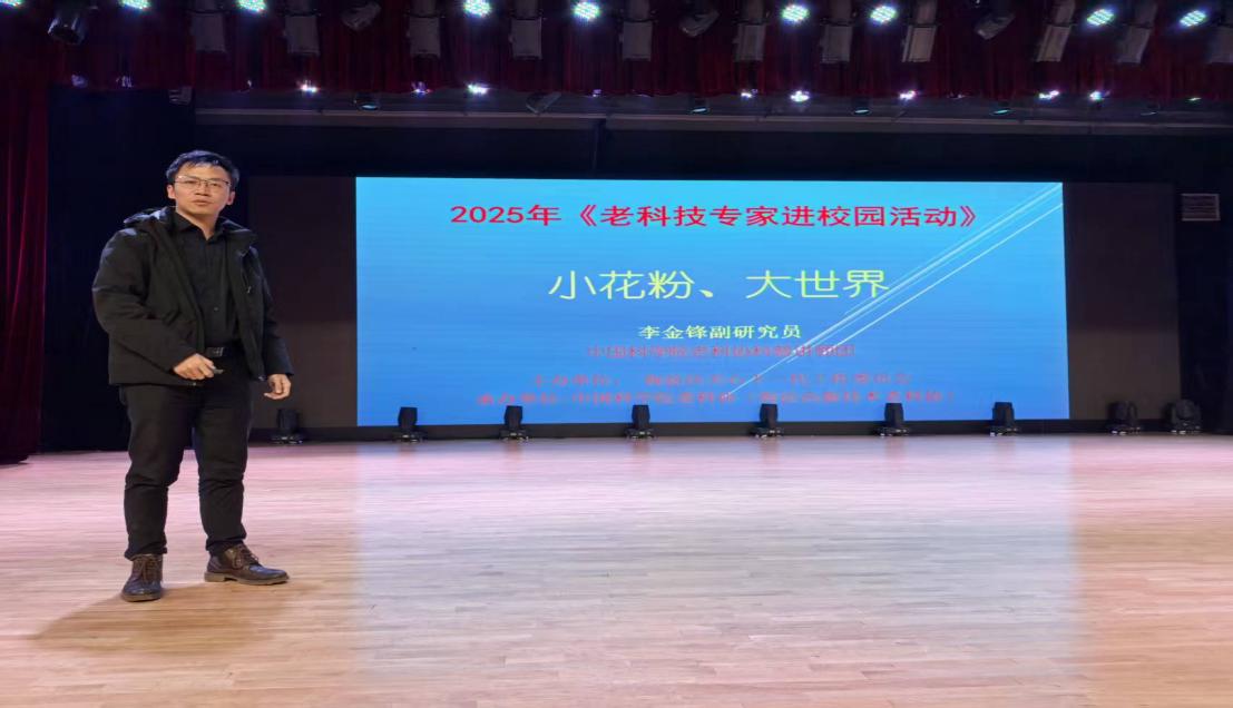 2025年10月28日,北京市十一学校龙樾实验中学举办“老科技专家进校园”活动,邀请中国科学院老科协科普讲师团成员,中国科学院植物研究所硕士生导师李金锋副研究员作“小花粉 大世界-认识花粉”报告,为同学们讲授有关花粉与其应用的有关科学知识。李老师讲授的内容主要包括:花粉是什么,花粉是怎么传播的,花粉有哪些应用等。他从专业的视角,利用生动的课件和通俗的语言,带领同学们了解这些小小颗粒的奇妙世界。李金锋老师长期从事孢粉学、植物学、植物演化及气候变化相关的研究工作。李金锋老师将其工作