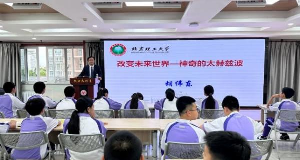 2025年9月16日中国科学院老科协科普讲师团马宏宾、孙旭、邹德浩、卢建光四位专家,以及北京理工大学教授胡伟东来到北京理工大学附属中学东校区,以“漫谈智能时代”为主题作系列科普讲座。
