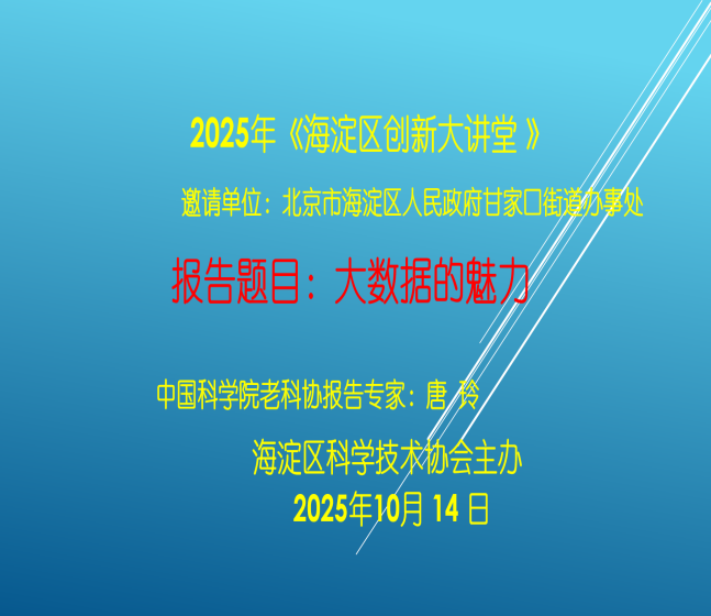 甘家口街道举办“海淀创新大讲堂”活动唐玲教授应邀作“大数据的魅力”报告