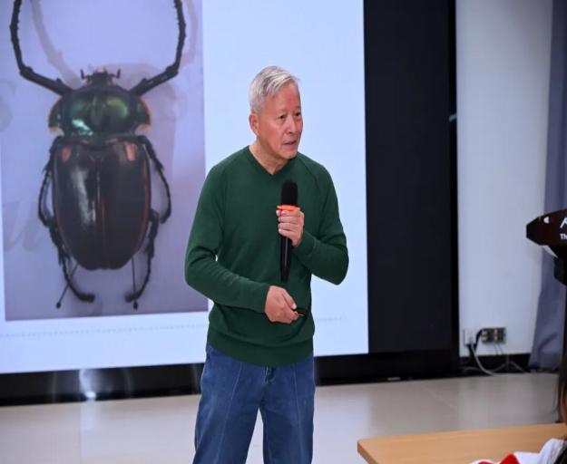 报告伊始,肖方老师以自身深耕科普领域数十年的经历开篇,瞬间拉近了与学生的距离。作为北京动物园科普馆首任馆长,他结合多年中小学生科普教育经验,用生动幽默的语言开启了这场“标本探秘之旅”。报告中,他展示了多种极具代表性的动物标本对应的科普知识,从世界最大的帝王蝉,到中国最大的裳凤蝶、乌桕大蚕蛾,再到形态独特的瘤刺螳螂、拉步甲、阳彩臂金龟等珍稀物种,每一种动物的形态特征、生存环境和生活习性都被他讲解得细致入微,让学生们仿佛置身于多彩的动物世界。