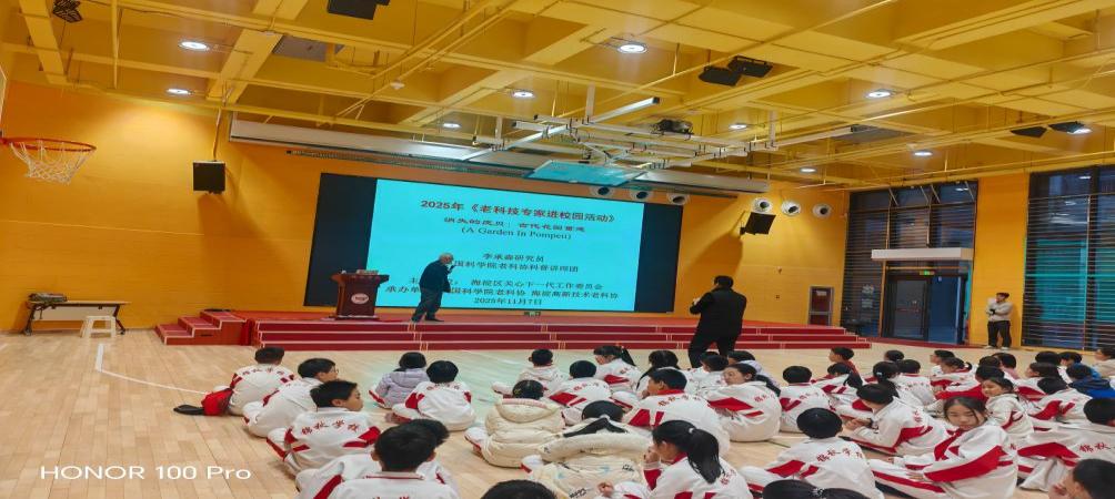 2025年11月7日,海淀区锦秋学校举办“老科技专家进校园”活动,邀请中国科学院老科协科普讲师团团长,中国科学院植物所原常务副所长李承森研究员作“庞贝古花园 重建的故事”报告,带同学们穿越时空,走进了被火山灰封存的庞贝古城与古花园世界。该校六年级8个班共189名学生聆听了报告。