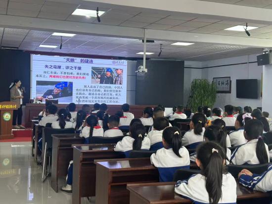 南仁东为“中国天眼”建成付出的巨大努力,诠释了科学家精神。那个曾经爱看星空的他,成长为科学家,也变成了让孩子们仰望的星星。王老师鼓励同学们努力尝试一个学期又一个学期,一个学年又一个学年的坚持,脚踏实地,勤奋学习,就一定会有所收获和成绩,让持之以恒的科学精神在心中生根发芽。
