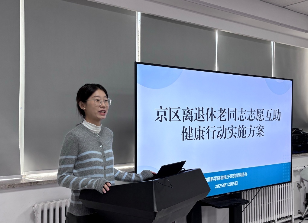 微电子所人事处离退办工作人员张一祎详细介绍了“京区离退休老同志志愿互助健康行动”的实施方案。