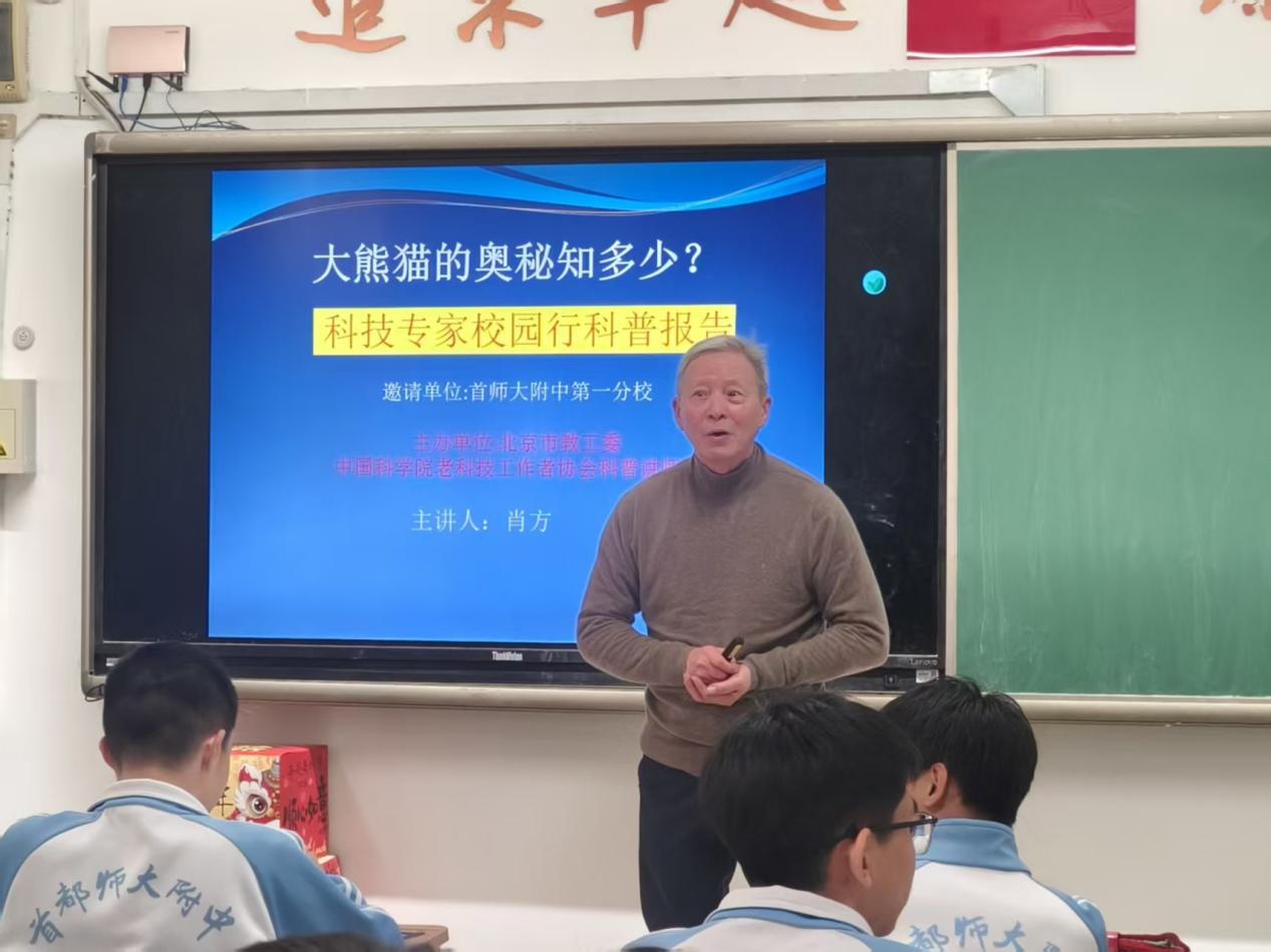 2026年1月5日,中国科学院老科协科普讲师团肖方老师应北京市教工委邀请来到首都师范大学附中第一分校,为40多位初三同学作《大熊猫的奥秘知多少》的报告。