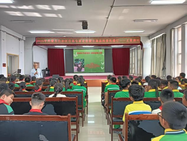 李承森老师在锡盟科协王小平主任陪同下,来到多伦县第三中学、正蓝旗第二小学、太仆寺旗第三小学和正镶白旗第一小学,为近900名同学作《传承科学家精神 探秘植物王国》的讲座。