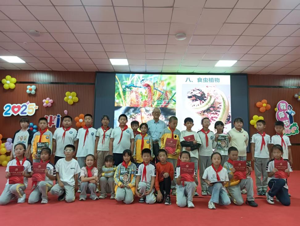在讲座过程中,李老师与同学们互动热烈。大量的图片、案例和故事,深深吸引着同学们,激发起他们的好奇心和探索大自然的兴趣。最后,李老师鼓励同学们从身边的植物学起,不断丰富自己的植物学知识,培养自己从小就能够探究花草树木的本领,长大以后,像老一辈科学家一样为国家建设贡献自己的力量。