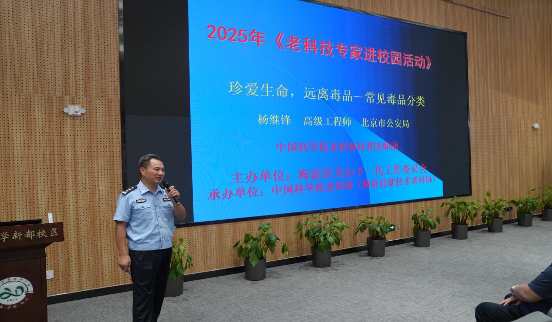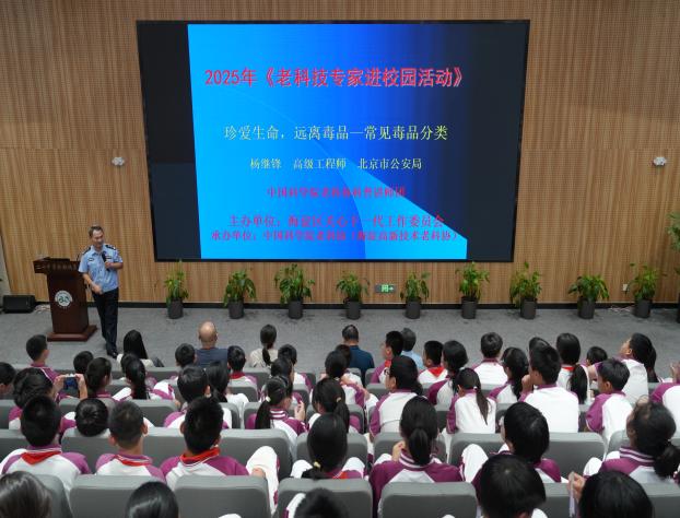 9月16日,北京市第二十中学新都校区举办“老科技专家进校园”活动,邀请中国科学院老科协科普讲师团成员,杨继峰高级工程师为初一年级学生作“珍惜生命 远离毒品”专题报告,该校310名学生现场聆听。杨老师报告的主要内容包括:毒品的分类和来源,毒品对人体的危害,提高青少年识毒防毒能力,为青少年树立正确的人生观,世界观保驾护航。