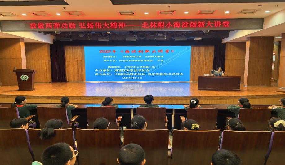 为大力弘扬科学家精神,提升青少年科学素养,培养学生的创新思维能力,让“科学家精神”扎根心田,2025年9月15日下午,中国科学院老科协科普讲师团成员孙莹教授级高级工程师走进北京林业大学附属小学,为学校五年级137名同学作了题为“致敬两弹功勋,弘扬伟大精神”的科普讲座。
