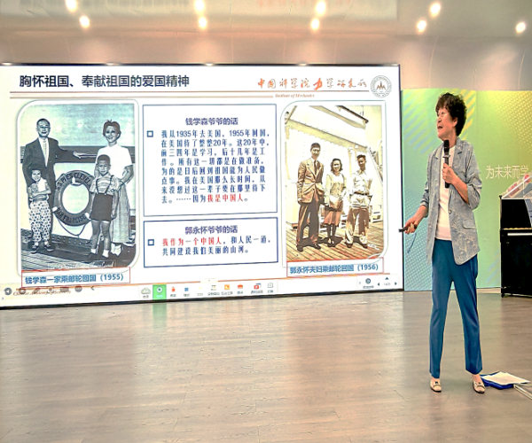 9月12日上午,王柏懿研究员的长沙科普之行迎来了第三站 —— 长郡雨花外国语学校(左家塘校区)。她面向该校初一、初二100余名学子,以《走近大师钱学森》为题开讲,在延续钱学森先生家国情怀、科研精神讲述的基础上,结合初中生的认知特点,融入了核弹、导弹等国防科技知识的科普讲解。一位初二老师听了讲座后,在班级微信群里发表感言说:非常感谢湖南省老科协为孩子们悉心联系了这场精彩且意义非凡的讲座。9月3日,我们刚刚一同观看了气势恢宏的大阅兵,孩子们对我国先进的国防武器充满了好奇与自豪,此时又正值初二开学,他们刚刚接触物理这门充满魅力的科学。这场讲座来得正是时候,它如同一座桥梁,完美地将国家荣誉、国防知识与物理学的实际应用连接起来。