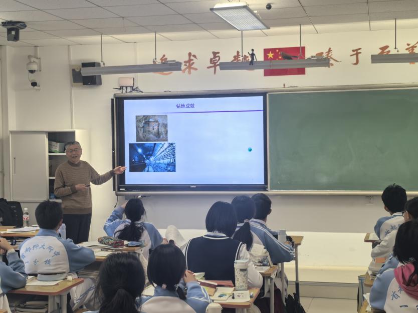 3月16日,中国科学院老科协科普讲师团成员,清华大学董景新教授应北京市教育系统关工委邀请,来到首都师范大学附中第一分校,为初三年级3+1班42名学生作《如何向地球深处探宝》的科普报告,受到热烈欢迎。