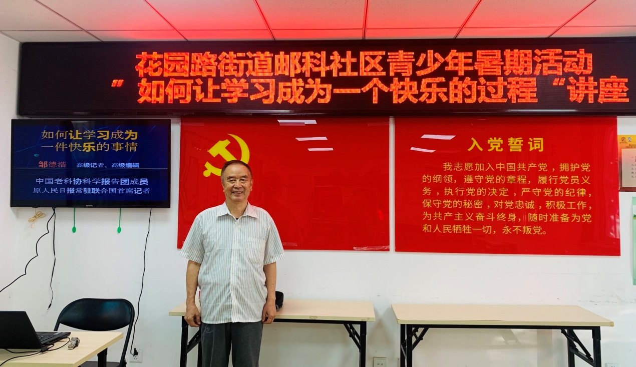 ——邹德浩高级记者为花园路街道邮科社区青少年作暑期报告
