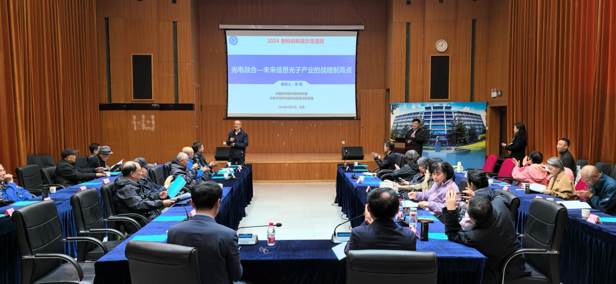 2026年3月30日,由中国科学院老科协主办、中国老科协和中国科学院老专家老干部服务局支持、院老科协半导体研究所分会和所离退办承办的《光电融合技术的应用进展》学术沙龙成功举办。院老科协副理事长曹以玉、监事长赵震声、办公室主任黄玉萍,半导体研究所党委副书记王文武等出席活动,所内外30余位老专家及50多位研究生参加。