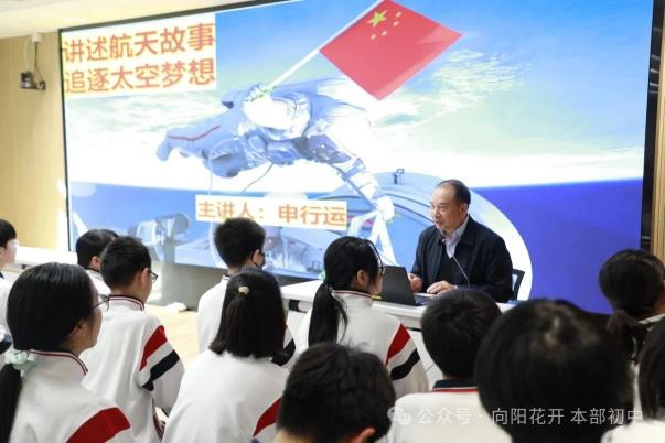 2026年3月10日,中国科学院老科协科普讲师团成员,中国人民解放军航天员大队首任大队长申行运应邀来到北京市陈经纶中学开展《百名科学家进千校》活动。为初中生作《讲述航天故事、追逐太空梦想》的报告。这是今年学校举办的经纬科学大讲堂第一期活动。其宗旨是深入落实科学育人理念,传承科学家精神,推动集团化办学资源共享,切实发挥“课程创新计划”的辐射带动作用。